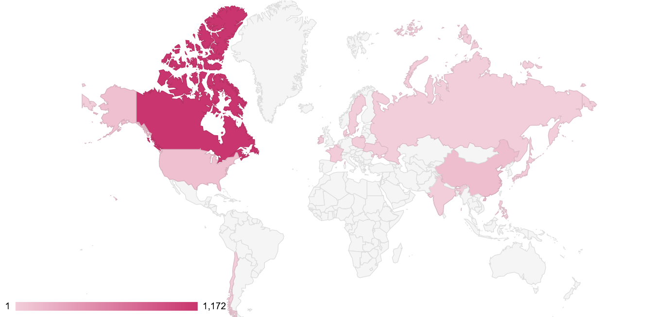 This map shows the concentration of visitors to my blog in the past 365 days.