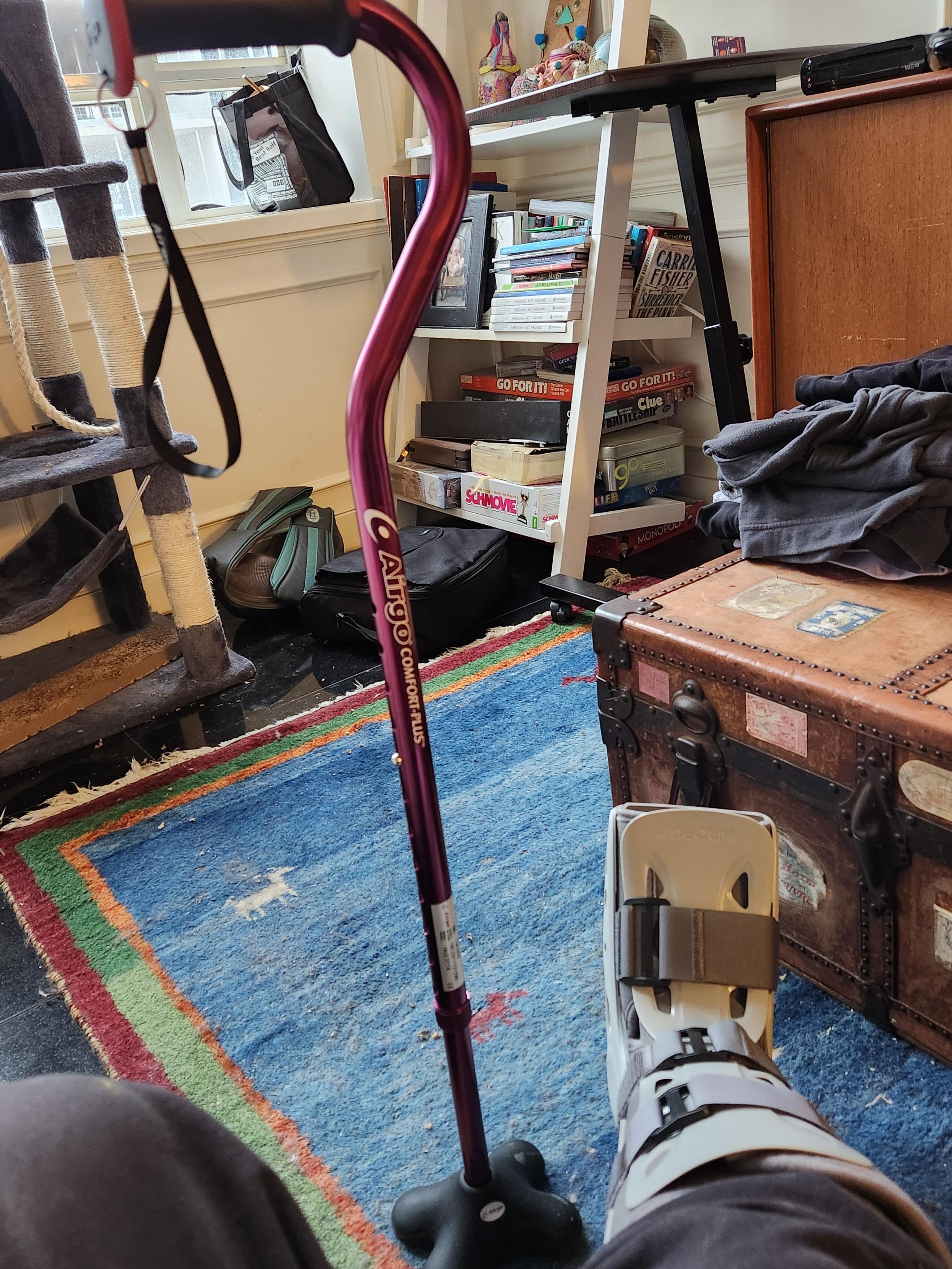 I will not leave the house again without my cane. Holyfuckinggodthishurts.
